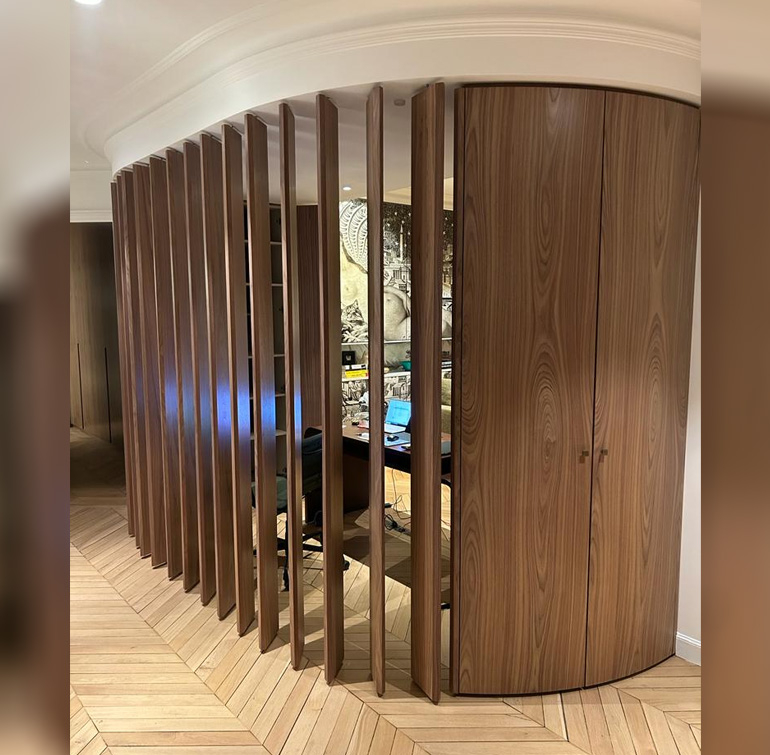 Que ce soit pour un dressing, une bibliothèque, une cuisine ou un bureau, notre approche repose sur un savoir-faire artisanal et une attention particulière aux détails.